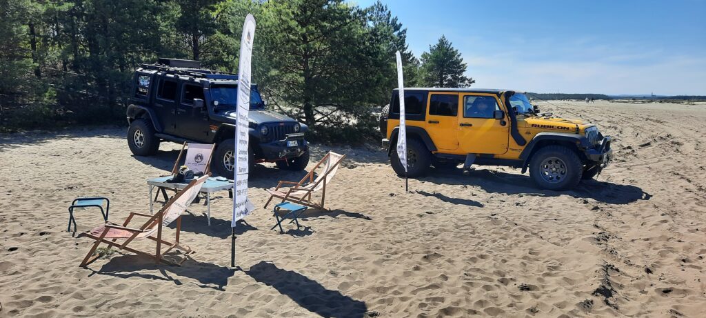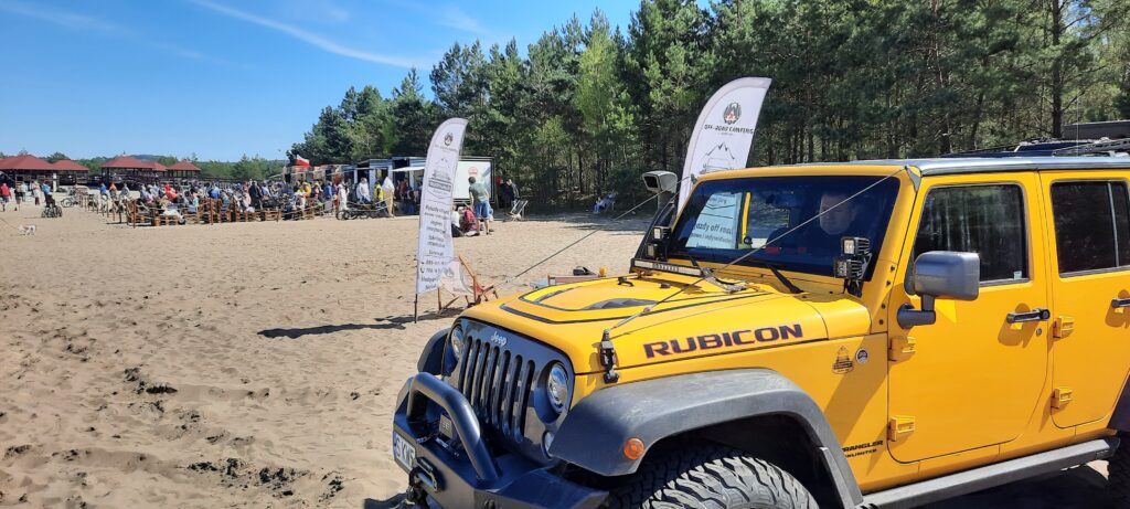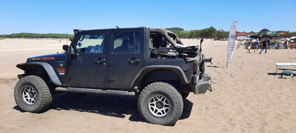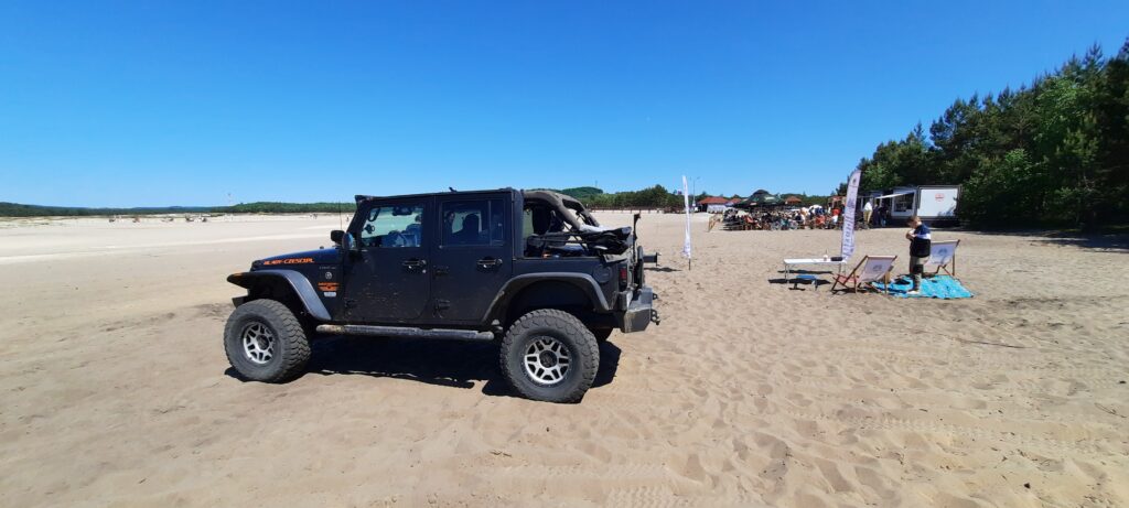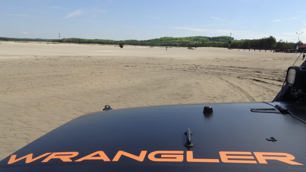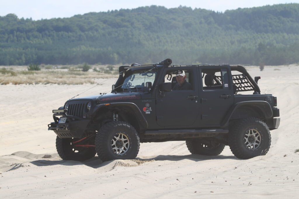 Jeep Wrangler, którym się poruszamy, to legendarny pojazd terenowy stworzony z myślą o wyzwaniach, takich jak pustynny piasek.